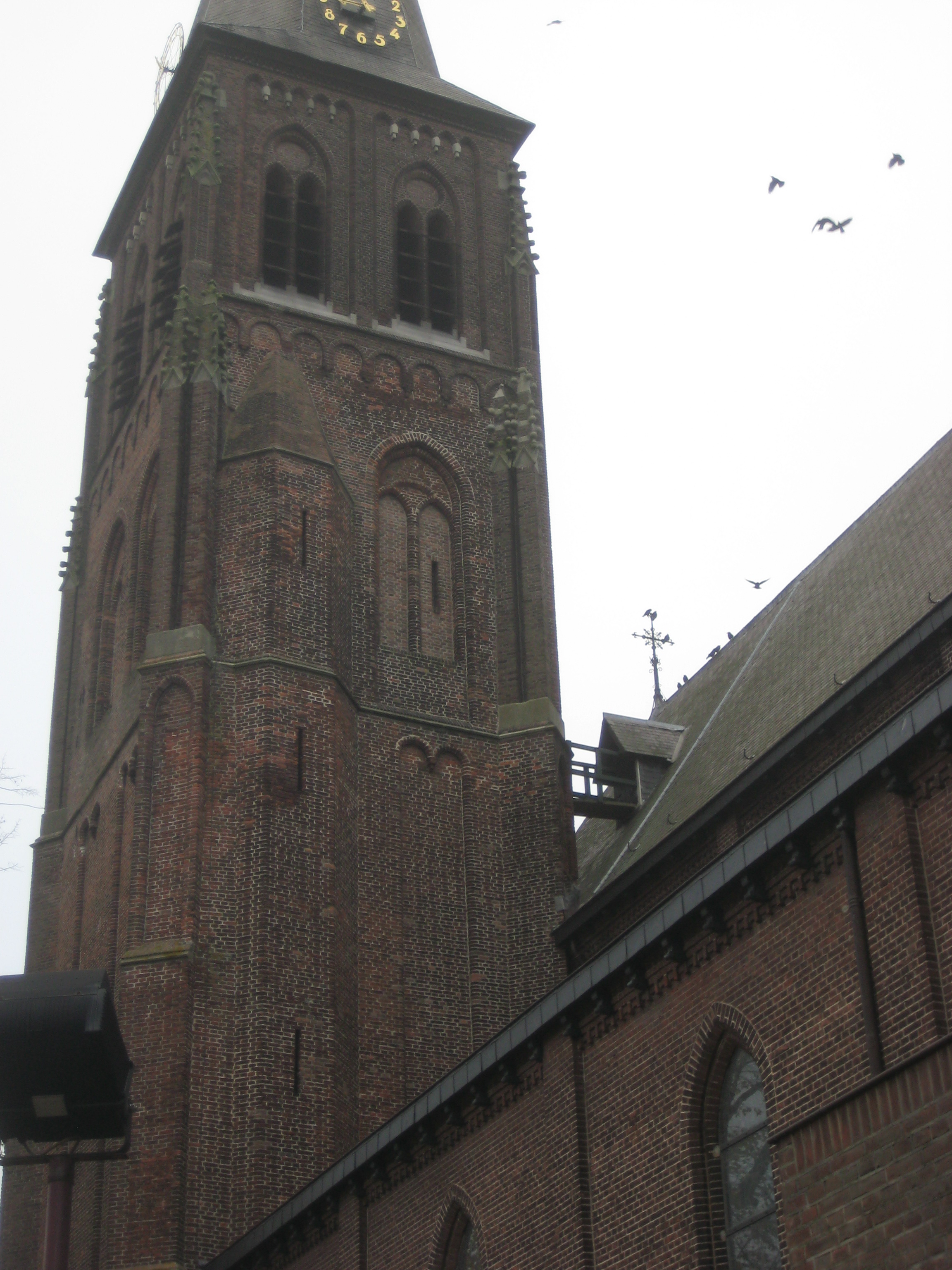 Als je toch bij de kerk bent, kijk dan ook even naar die fraaie zwarte metselkruisen naast de grote torendeur. Dat zijn een soort versierselen waarbij de zwarte stenen die (te) dicht bij de vuurmond waren gebakken, gebruikt als een soort versiering. Er zijn mensen die denken dat het juridische of symbolen van het recht zijn, maar ook dat zijn charlatans, denk ik, mensen met iets teveel fantasie……