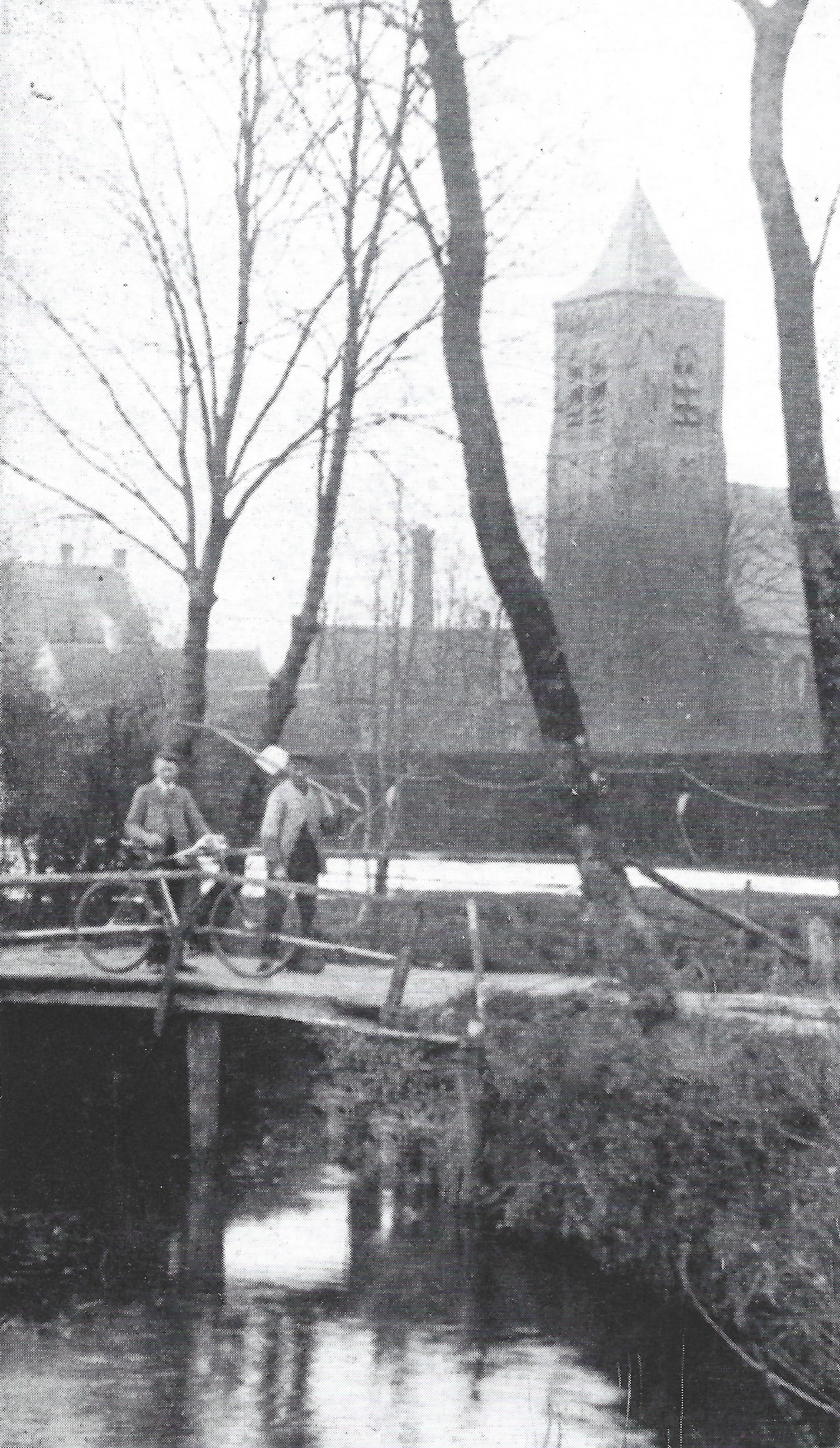 De oude Goirlese toren werd immers spottend door de mensen “de Goolse theebus” genoemd, omdat hij klein en stomp was met ook nog een ingedeukte korte spits. Zie de foto uit 1890! Dus werd er in 1897 een verdieping bovenop gezet van 10 meter, met een hoge ranke spits erop, samen werd de toren liefst 70 meter hoog! Maar ja, toen was het geld echt op voor de nieuwbouw van de kerk. De gemeente Goirle had zelfs al ƒ 5000,- extra voor de toren ingelegd, en meer zat er niet in. Dus werd die bovenste verdieping nog niet ingericht als klokkenverdieping, maar bleven de klokken gewoon op de 3e verdieping hangen. Zie de foto uit 1900, waarop je die klokkenverdieping goed kunt zien!