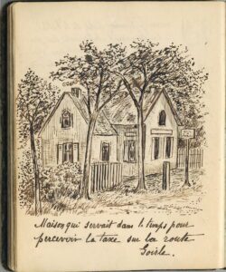 De wandeling naar Goirle beschrijft hij als volgt: “Laten we de beukenlaan nemen, dicht bij de brug van Nieuwkerk die achter het hotel langs gaat (Hotel du Golf, GvH), de weg gaat verder en een voetpad dat we nemen loopt over de heide tussen enkele dennenbomen door. In deze streek overheerst de rust, een wulp hangt in de lucht, hoefsporen van een paard staan in het zand; de mens is afwezig, een enkele vogel is te zien in tegenstelling tot het wild. Na diverse bochten komt men op de verharde weg waar we links af slaan en lopen nog een half uur over een beschaduwde weg en komen dan in Goirle aan, een dorp van 3000 inwoners.